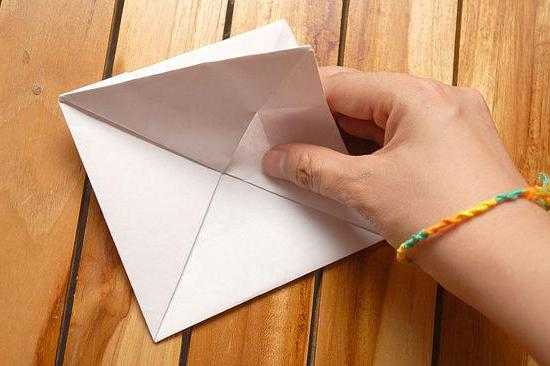 - Загните верхний угол так, чтобы его острие оказалось в центре квадрата.