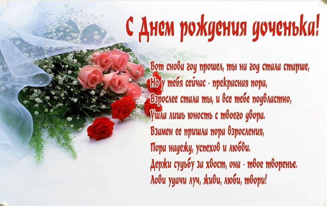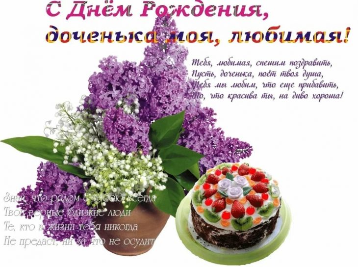 Желаю крепкого здоровья,в жизни встречалось.всегда,И это — праздник радостный для К дочке будет Мечты все исполняются.И только хорошее Пусть дочка радует нынче день рождения,Щедрой, ласковой и добройдень веселье,непременно сбывались,жизни вашей красавицы!У вашей дочки Гости поздравлять придут.Пусть дарит каждый Мечты ее все семье, невероятных чудес в