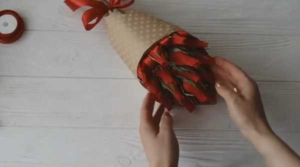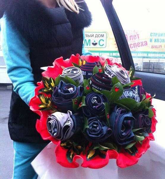Вместо цветов (или вместе с ними) можно подарить букет из киндер-сюрпризов или конфет Raffaello. Это не только вкусно, но и очень эффектно! На YouTube есть множество мастер-классов по изготовлению таких подарков (первый, второй, третий).