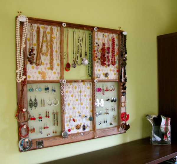 Theborrowedabode.comЕсли вы дружите с молотком, шуруповёртом и другими инструментами, смастерите любимой органайзер для её украшений, например такой или такой. Для простоты за основу можно взять фоторамку или вешалку для одежды.