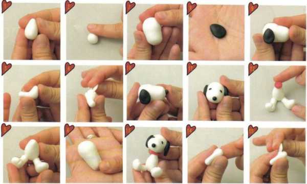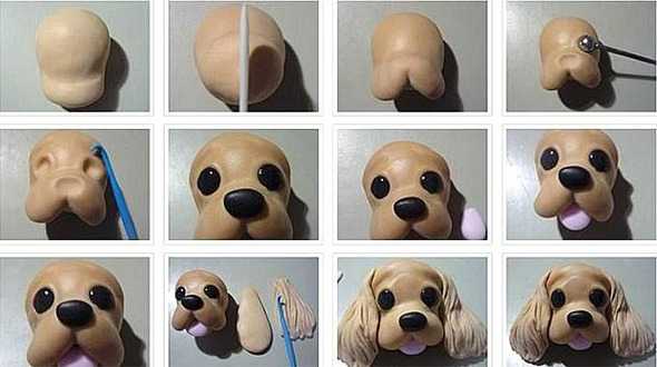 Вылепите небольшой шарик и поместите на нос — это будет божья коровка. По эскизу сформируйте ушки и аккуратно перенесите их на фигурку щенка.