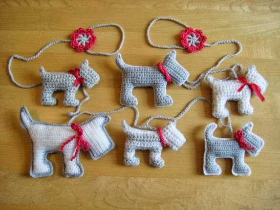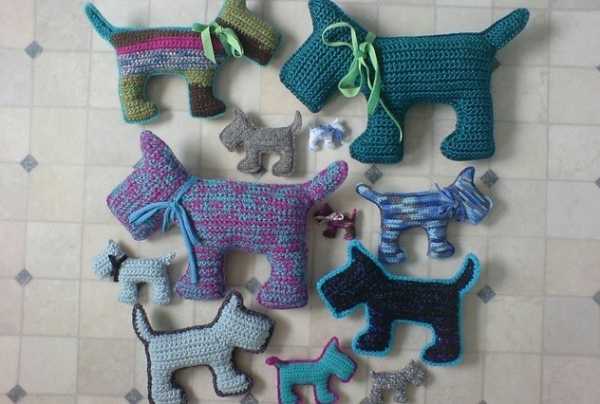 Вот такие прикольные собачонки могут стать основой для брелока, гирлянды и даже магнита. Вы можете самостоятельно связать собачку любого размера – состоит она из двух деталей, которые необходимо будет сшить вместе, набив серединку наполнителем. Принцип вязания для всех собачек одинаковый.