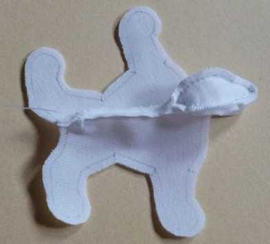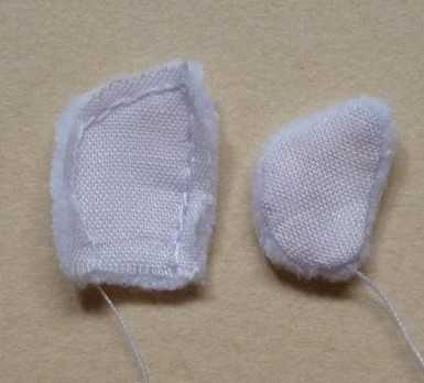 44. Из нарисованной детали на ткани, вырезаем уши с припуском.