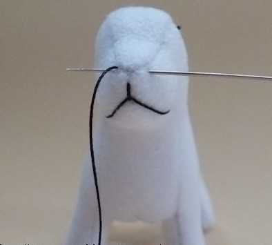 26. Пришиваем сначала с изнанки верхнюю часть мордочки.