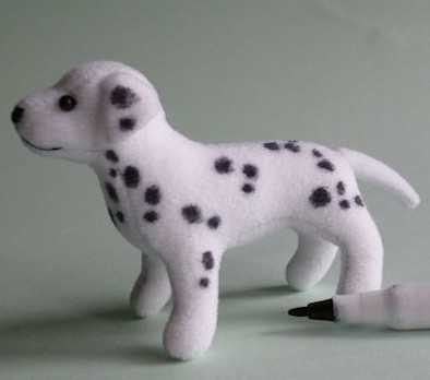 Пришить носик, ушки, хвост и пятнышки, а также глазки. На шею повязать атласную ленту.