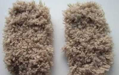 Берём готовые бахромушки и начинаем ими обшивать каркас собаки. Начинаем обшивать сначало с задней части по направлению к голове.