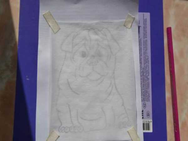 На рисунок собаки с помощью липкой ленты прикрепите кальку так, чтобы она выходила за рамку силуэта.