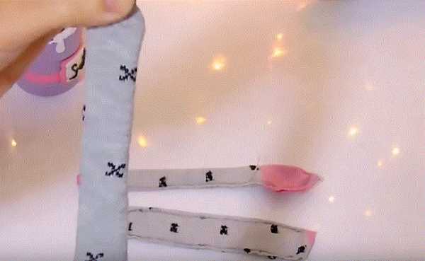 6. Отрежем розовую резинку носка.