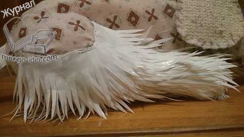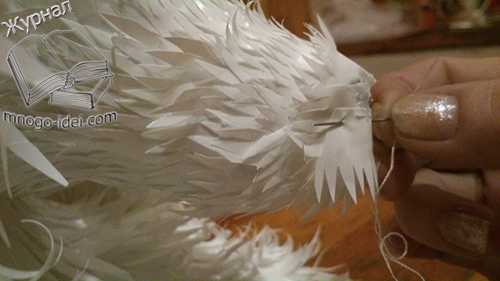 В самом конце нам потребуются самые короткие заготовки. Аккуратно закрываем весь каркас бахромушками и следим чтобы не чего не где не вылезало.