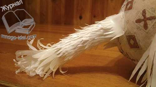 Собачка из пакетов у нас уже почти готова. Бахромушки на собачки можно с помощью рук слегка взъерошить, чтобы выглядело более естественно.