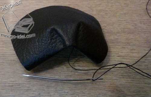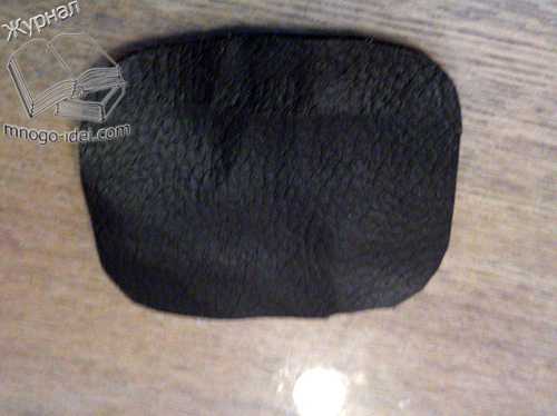 Теперь нам нужно сделать носик нашей собачки. Берём кусочек кожи чёрного цвета и вырезаем из неё овал.