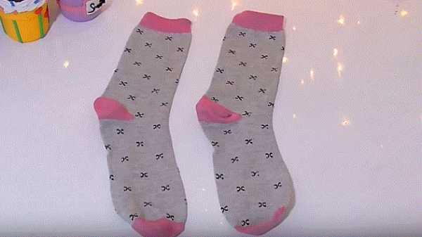 - Берем 2 носка с рисунком, с розовыми пятками и розовыми концами.