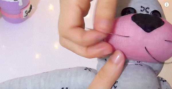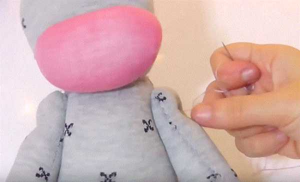 28. Пришивая аккуратно мордочку по овальной окружности, подвернув края ткани.
