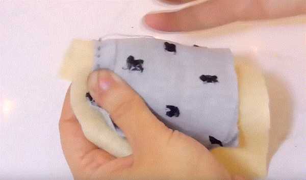 Обшиваем тканью нашу собачку. Делаем ей ушки и хвостик. По моему очень неплохо получилось.