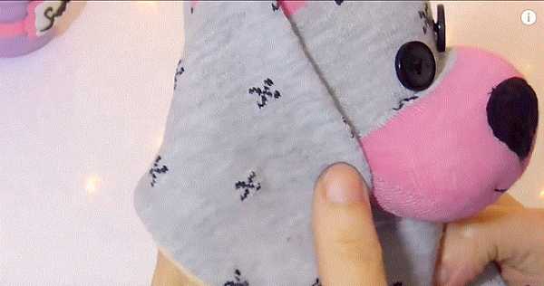 14. Берем второй носок и рисуем на нем: 2 передние лапки, хвостик, уши и мордочку (кончик носка).