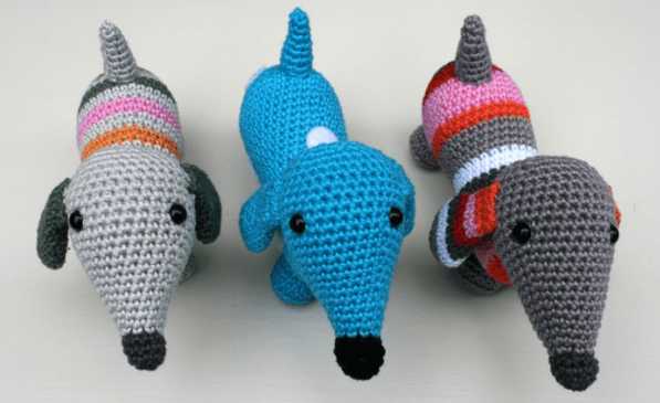 - Для задней ноги собаки: 1 ст. без накида в каждую следующую, 2 ст. без накида, 2 ст. без накида вместе. 1 ст. без накида в каждый из следующих двух ст. без накида. Для каждой ноги вяжем ряды 11-14.