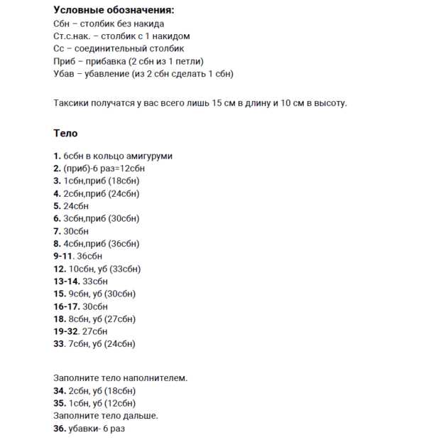 - 13 воздушных петель, со второй петли от крючка, затем вяжем один соединительный столбик, в каждую из следующих 2 воздушные петли, 2 столбика без накида в следующую воздушную петлю. По одному столбику без накида в каждую из следующих девяти воздушных петель. Делаем один столбик без накида в последний столбик без накида вязания головы и один соединительный столбик в следующий столбик без накида (это спинка и хвостик). Делаем одну воздушную петлю и поворачиваем вязание.