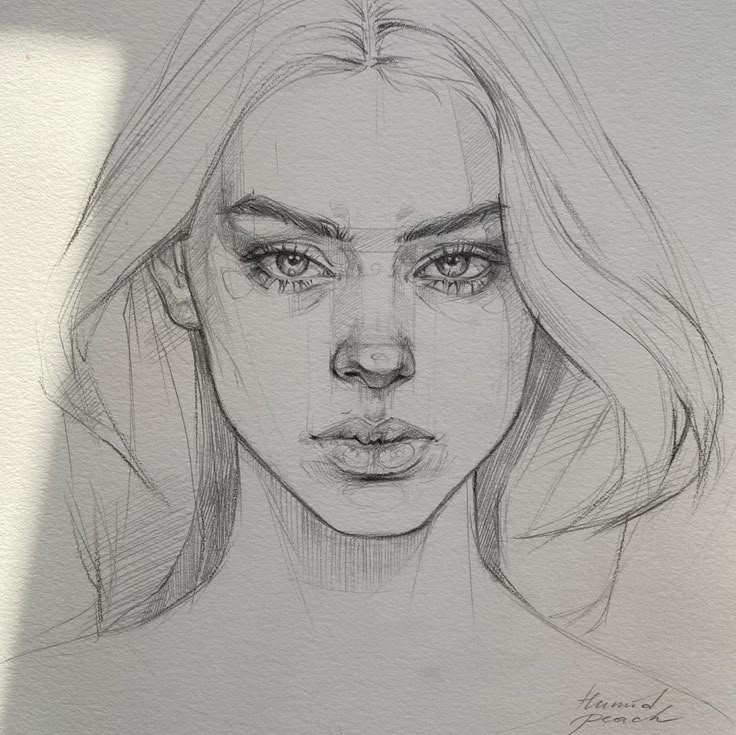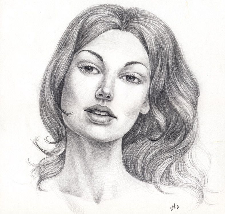 Если портрет рисуется с лица модели или по памяти, то можно несколькими легкими линиями подкорректировать форму, определить примерную ширину подбородка и линию роста волос.