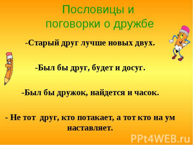 Содержание страницы: пословицы и поговорки со словом «дружба».