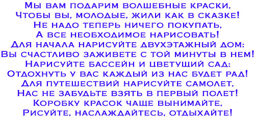 Для молодоженов и их родителей свадьба – это трогательный и немного грустный момент создания новой семьи. Для родственников, друзей и иных гостей – повод хорошо погулять и повеселиться. Пожелания молодым вовсе не обязательно должны быть душевными и вызывать слезы умиления. Поздравления с днем свадьбы прикольные смешные и юморные – не менее важная часть этого праздника. Они поднимают настроение молодоженам и гостям и задают тон всей свадьбе. Шутками и приколами часто сопровождается вручение подарков жениху и невесте.