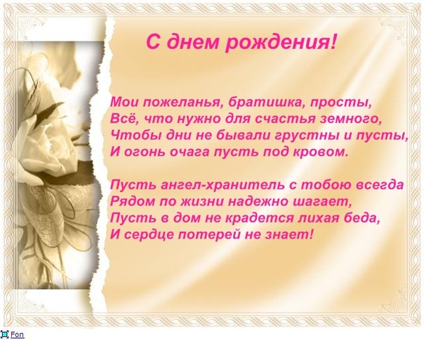 Поздравляю, брат! Пусть сегодня в вашем сердце родится радость и останется там навсегда.Ты для меня очень особенный человек, и ты не только брат, но и хороший друг.