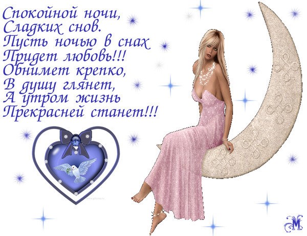 Потому что до сих пор тобой очарована. Прими моё пожелание сладких снов. - Твои поцелуи на ночь — это лучшее лекарство от всех моих переживаний и тревог. Моё сердце полностью принадлежит тебе, и никто не займет это место. Люблю и желаю хорошего отдыха.
