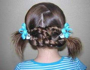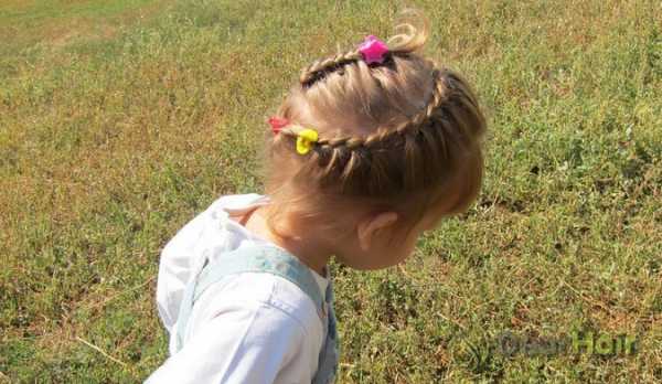 Косички для девочек слишком тугими делать не надо, лучше даже раздвинуть их пальцами. Можно сделать такую прическу праздничной, украсив пучок шпильками с яркими камушками или цветочками на конце. Перед началом плетения можно посмотреть обучающее видео, подробно рассмотреть технику переплетений волос и закреплений концов.