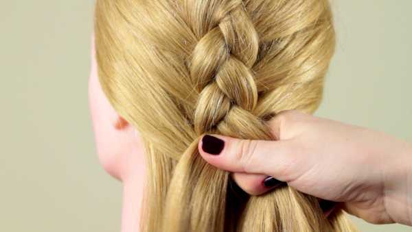 - Плетение должно закончиться обычной косой, состоящей из трех локонов, когда с наружней стороны не останется невплетенных волос.
