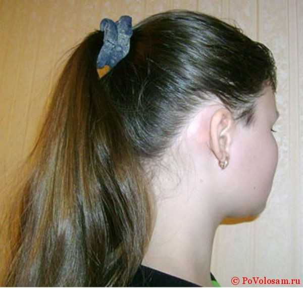 - Соберите все волосы на макушке или немного ниже в обычный хвостик.