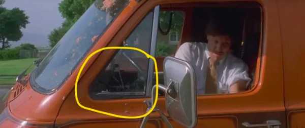 В комедии «Наполеон Динамит», когда Наполеон бросает апельсин в фургон дяди Рико, в отражении автомобиля можно видеть камеру