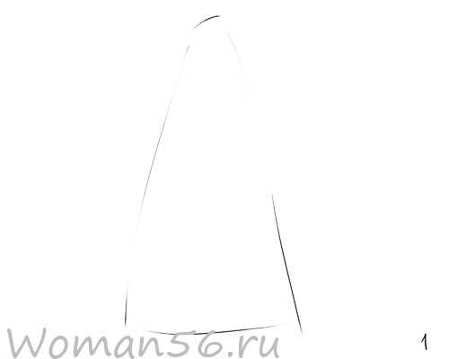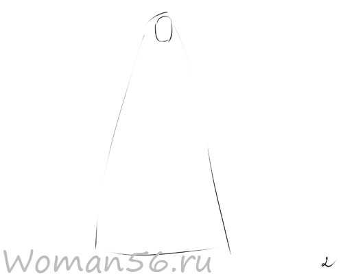 - Создают контур платья в форме трапеции, низ одежды отмечают волнистой линией.