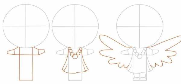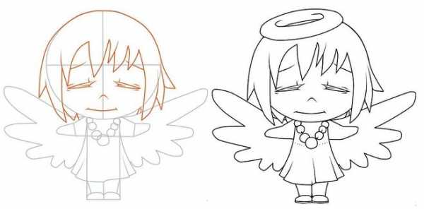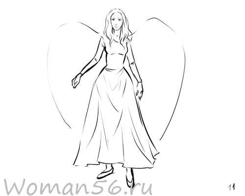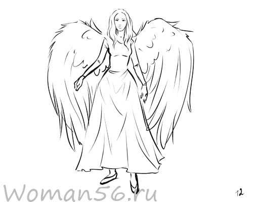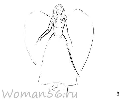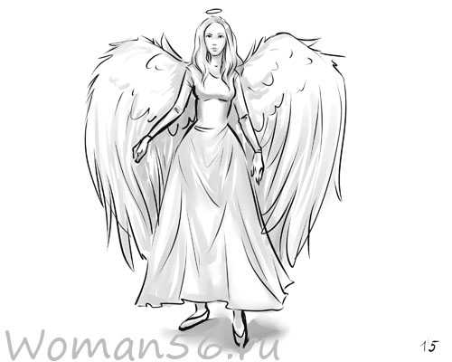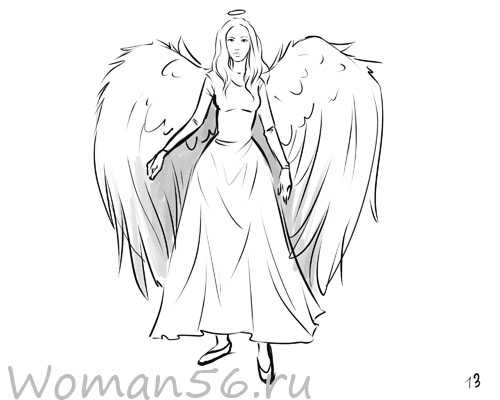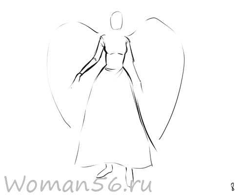 Теперь рассмотрим инструкцию, как нарисовать ангела с крыльями: