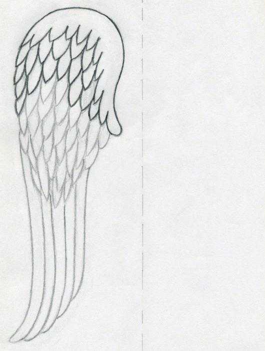 Как в случае с первым крылом, дорисовываем на втором мелкие перышки. Затем стираем ненужные линии, и все готово.