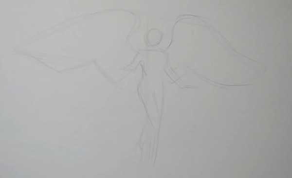 Теперь начните рисовать контур туловища ангела. Начните с ног, потом руки и платье.