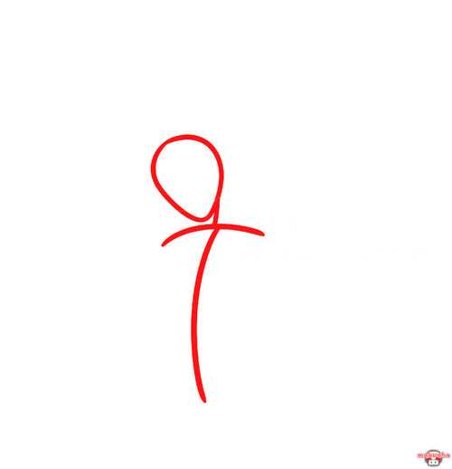 Начнем с того, что сделаем на листе бумаги набросок для головы и проведем линию вниз и поперек для наметки формы туловища.