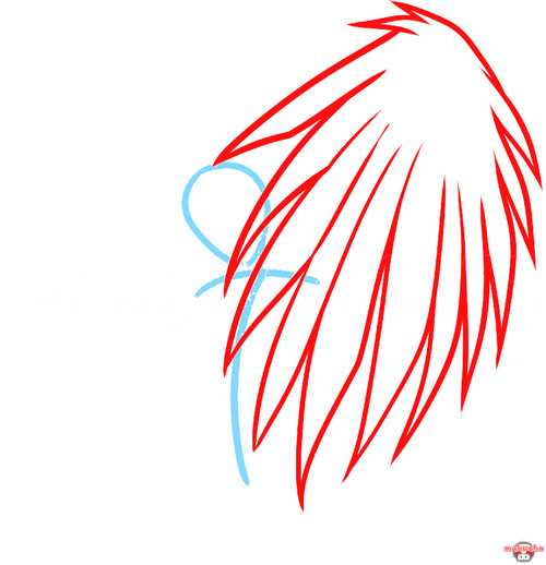- Создают контур волос и намечают пару линий в нижней части головы.