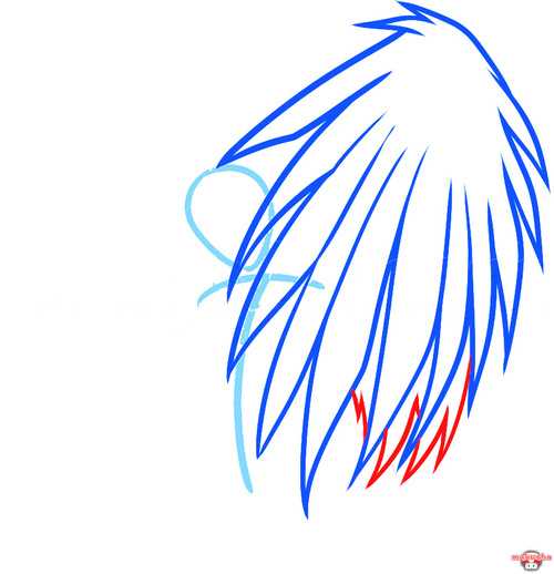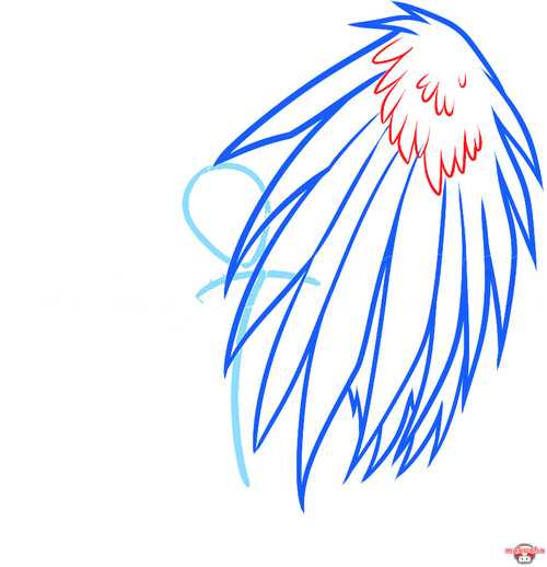 Дальше мы нарисуем перья другого крыла, которые выглядывают из-под кончиков первого.
