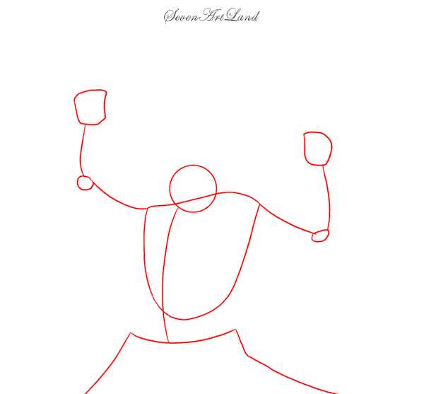 - Уточняют отдельные линии тела (рук и ног), прорисовывают мышцы (выгибая их контур слегка наружу) и плечи.