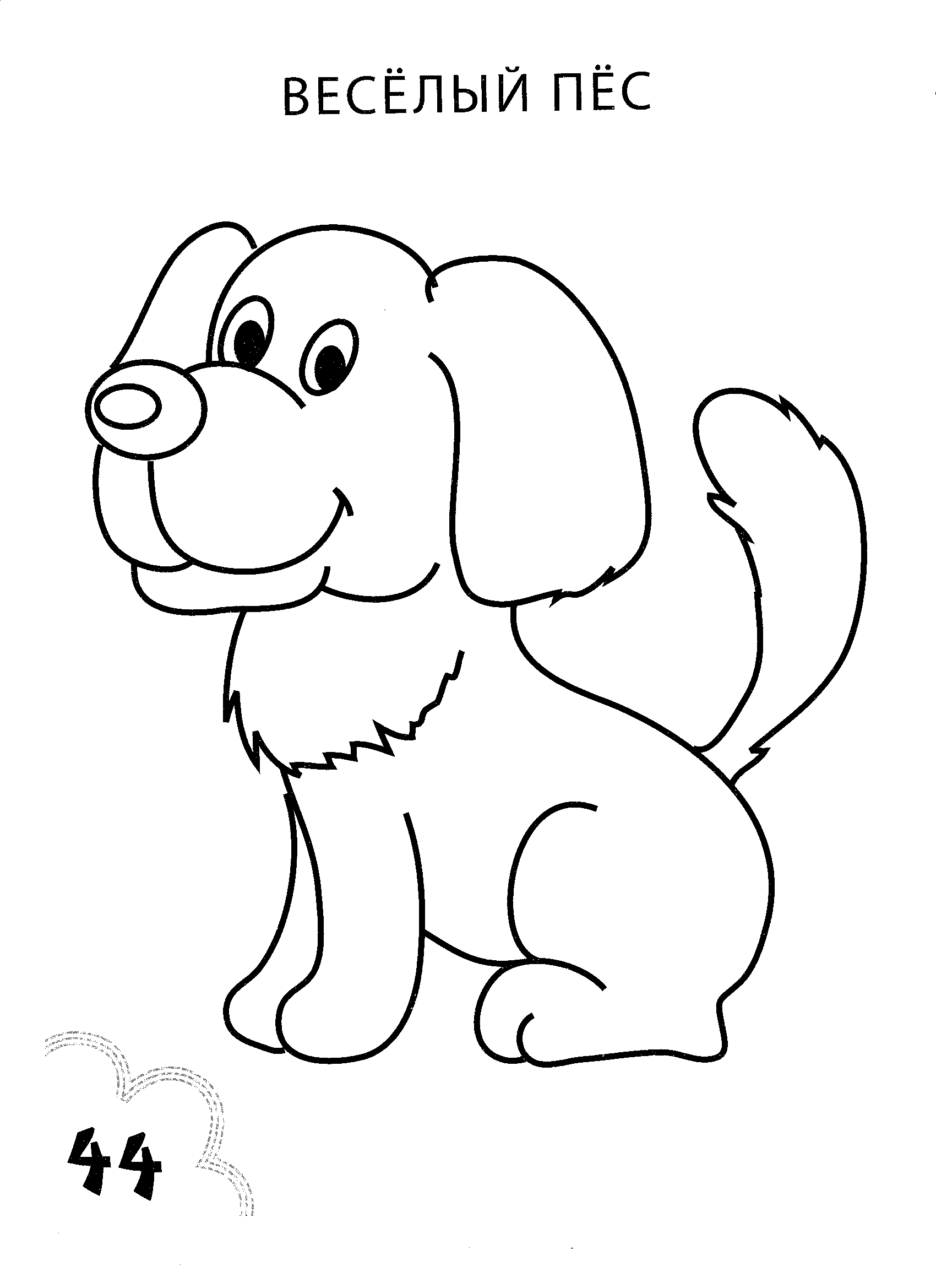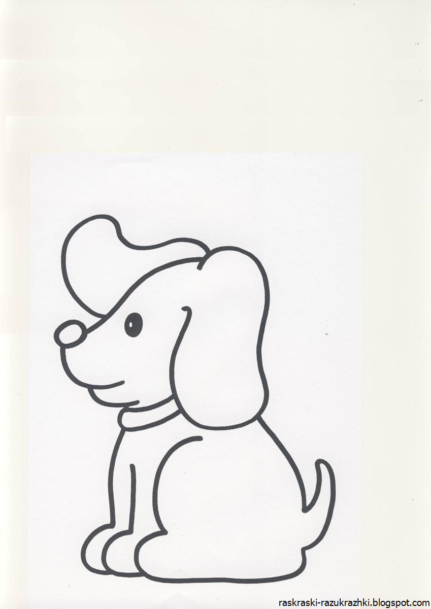 Если ребенок попросил нарисовать собаку, то не стоит теряться. Попробуйте изобразить такую простую и симпатичную раскраску. После можно вместе с малышом раскрасить песика яркими фломастерами, цветными карандашами или красками.