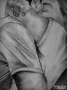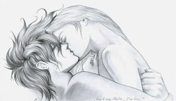 Если все же рисовать карандашом поэтапно лица вам пока сложно, попробуйте воссоздать более простое изображение, например, вот такие объятия.