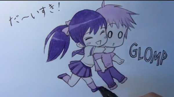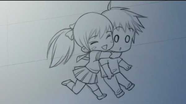 Как нарисовать обнимание в стиле Чиби карандашом поэтапно