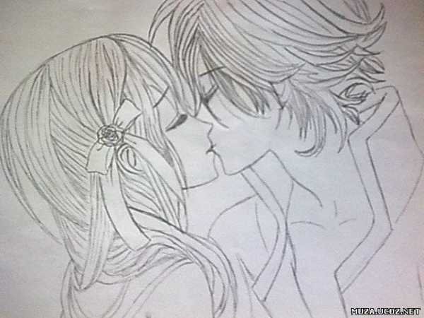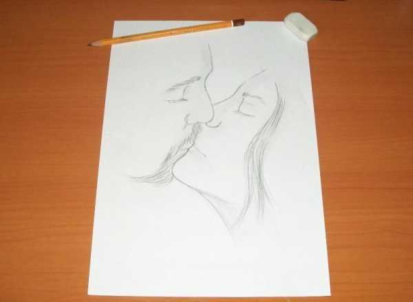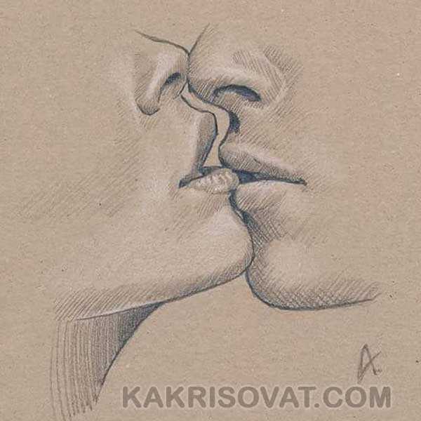 Вместе с теми, кто еще неуверенно держит в руках карандаш, нарисуем незамысловатую, но очень милую картинку – нежный поцелуй.