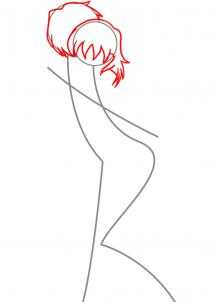 Прорисовываем четко его руки и контур ее туловища. Ненужные линии стираем.