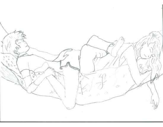 Для начала тонкими легкими движениями сделаем набросок очертаний головы и тел главных героев.