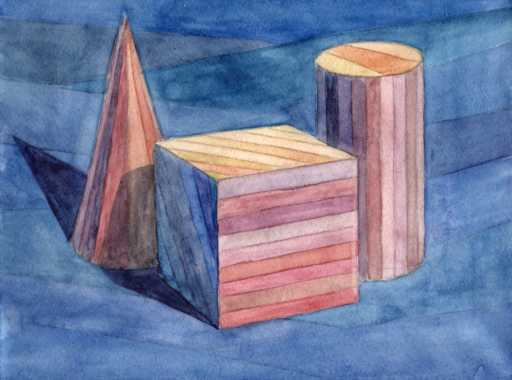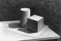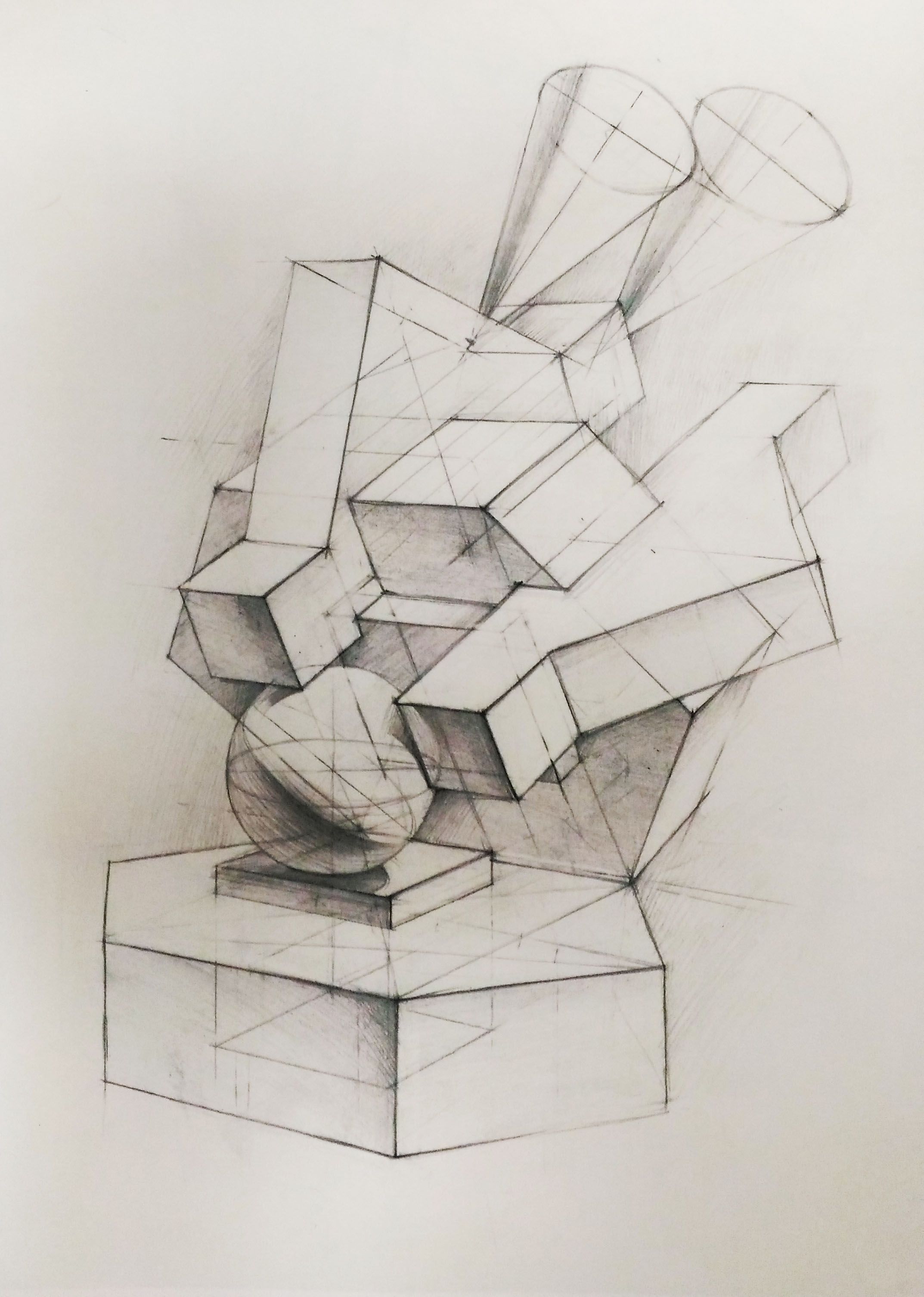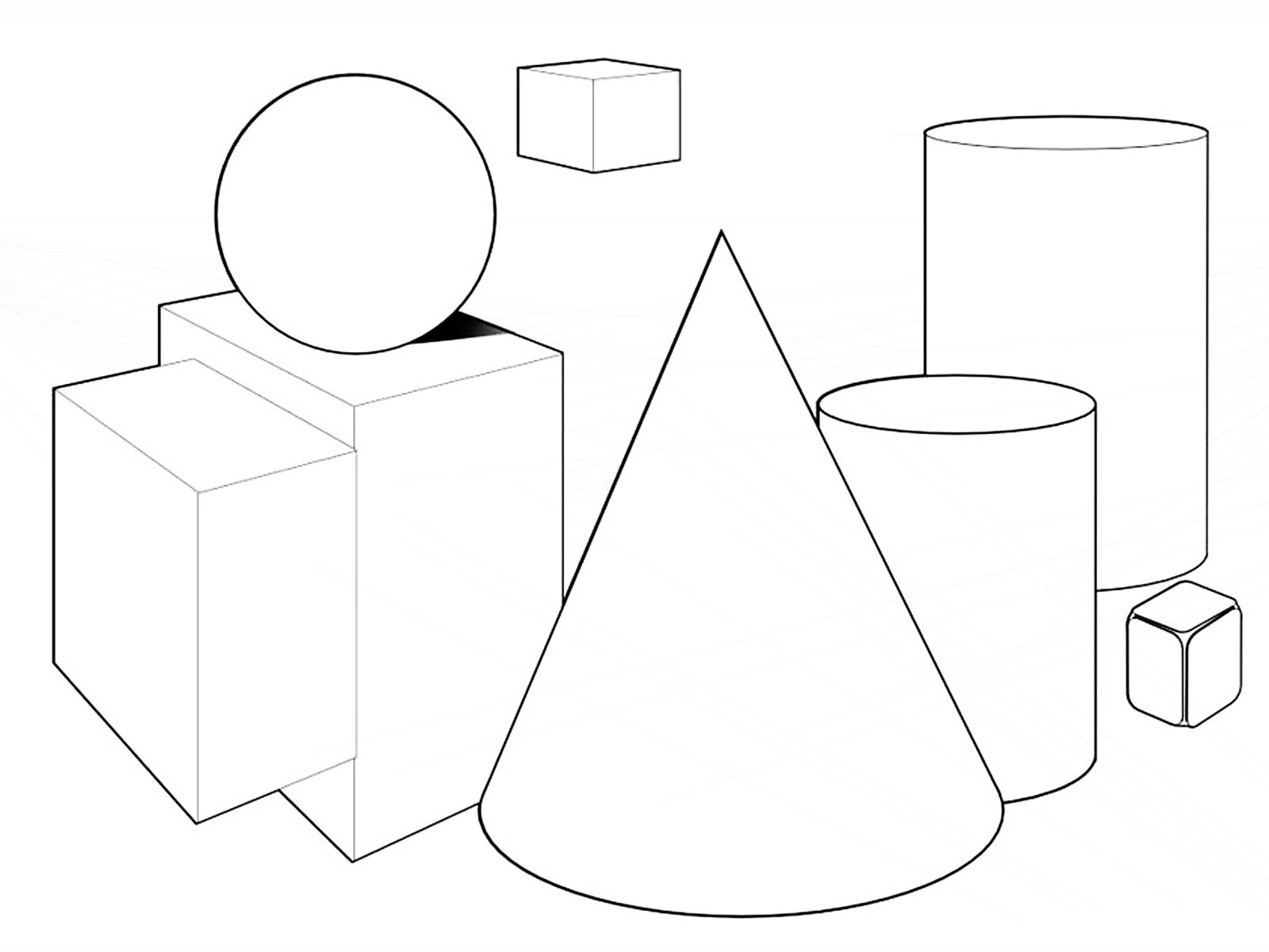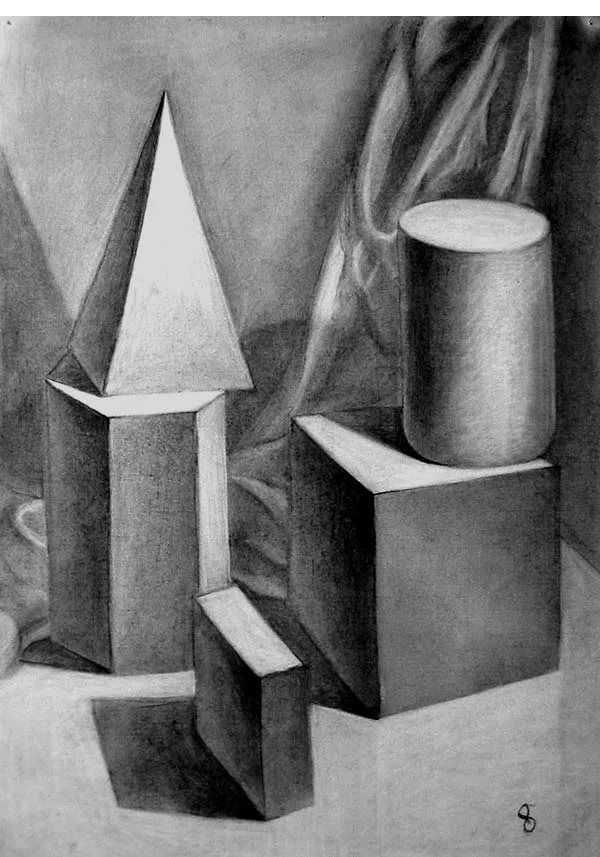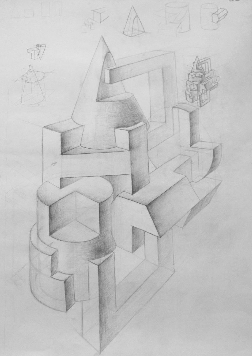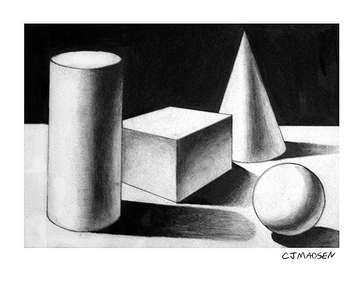 Наиболее подходящей формой для усвоения принципов построения рисунка являются геометрические тела , имеющие в своей основе ясные конструктивные строения. На простых геометрических телах легче всего понять и усвоить основы объемно-пространственной конструкции, передачи форм в перспективном сокращении, закономерности светотеней и пропорциональные соотношения.