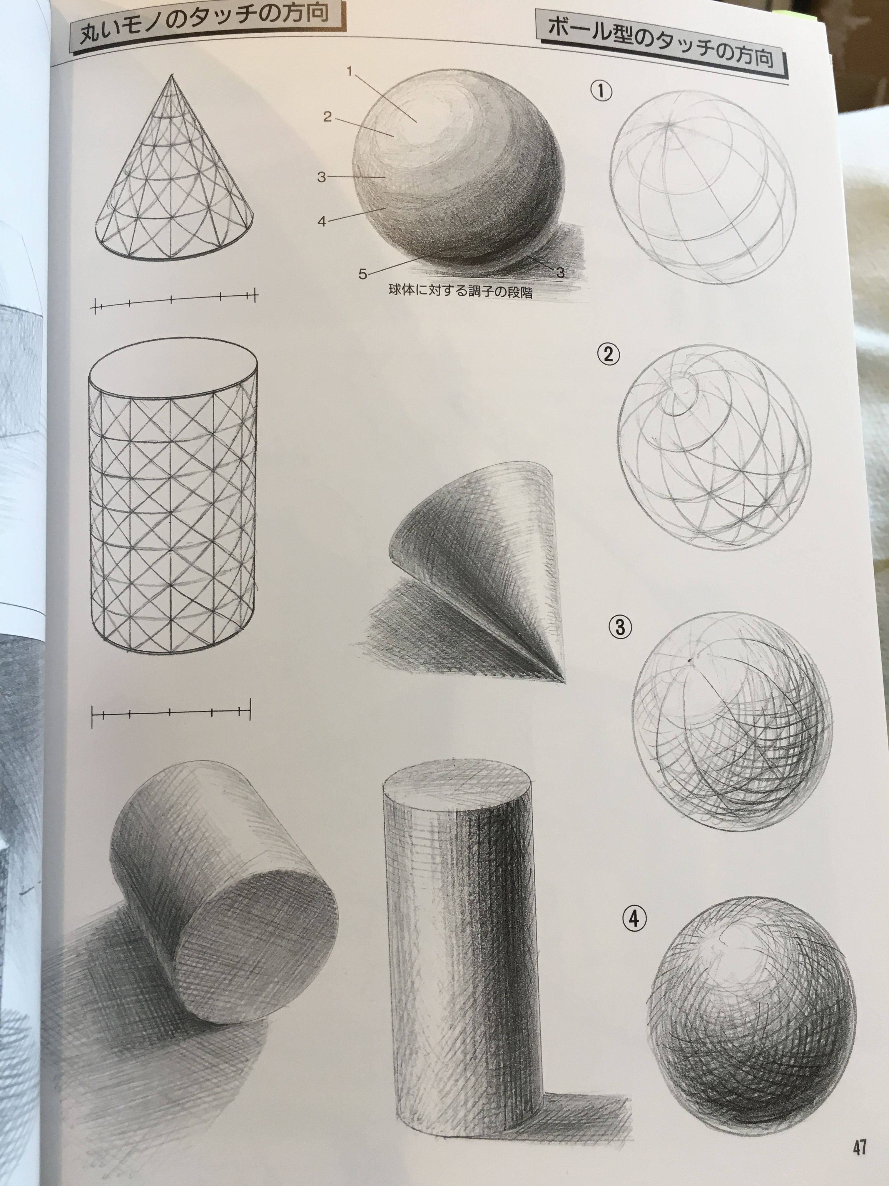3 рис. Здесь наша задача — построить 3 объемных геометрических фигуры (куб, шар и цилиндр). Шар — найти центр и провести две оси, отмерить от центра равные стороны и сделать симметричную форму.