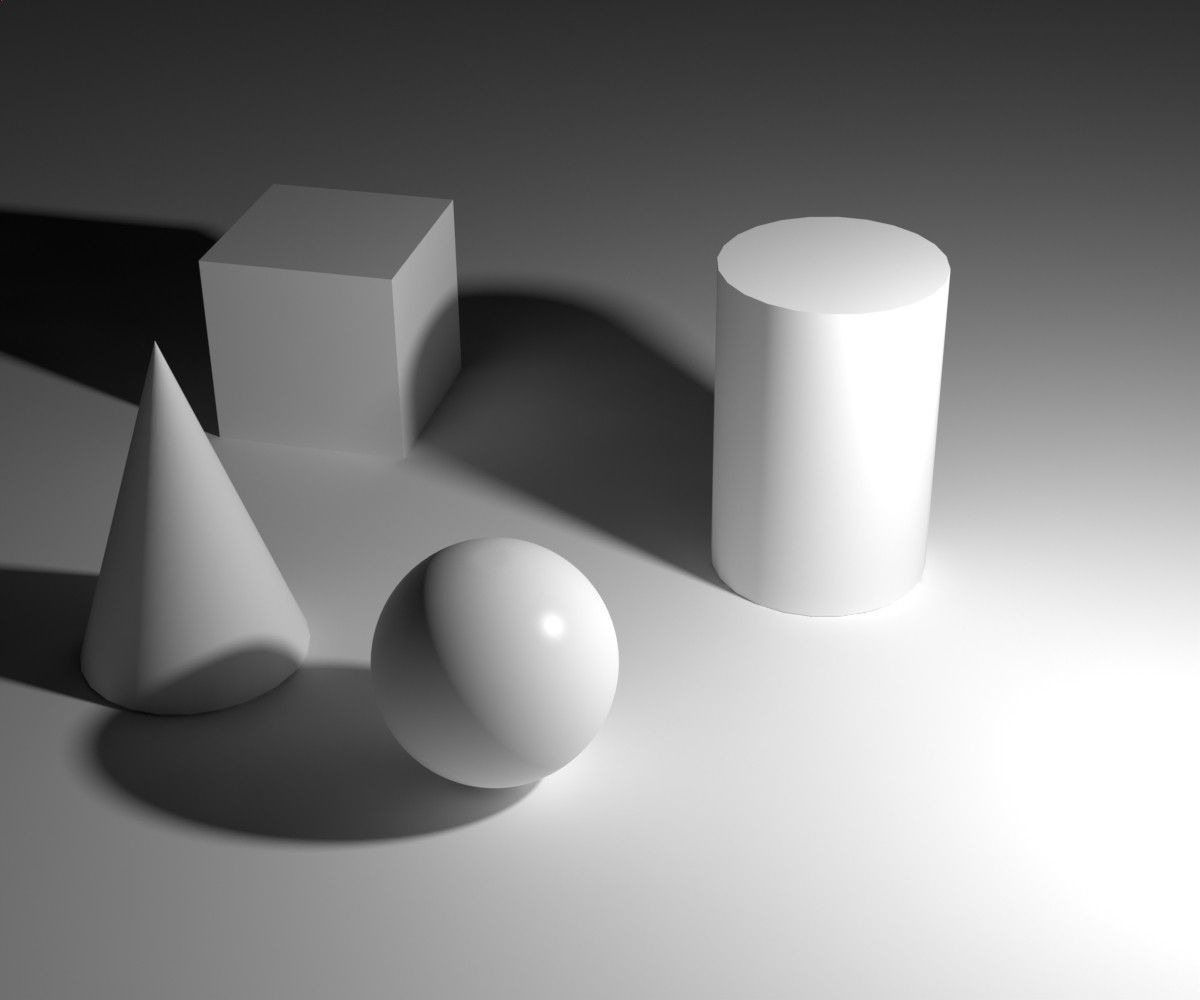 Рефлекс — это отражение света. Как правило он изображается на теневой стороне (см.рис.). И есть такие понятия, как полутень и полусвет — это плавный переход из тени к свету. Здесь мы должны показать плотность штрихом. Нужно углубить тень, полутень, полусвет, рефлекс и падающую тень от предметов.На простых объемных фигурах отрабатываются базовые навыки рисунка. Здесь важны и умение правильно измерить размеры и соотношения объектов, и грамотно построить перспективу, и скомпоновать изображение в листе, и точно передать светотени. Что же из себя представляют простые объемные фигуры?