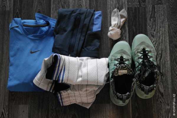 В пять часов тренировка, и я начинаю собирать сумку. Вообще, это мой основной набор: кроссовки, майка, шорты, носки, термо-белье, только воды не хватает.