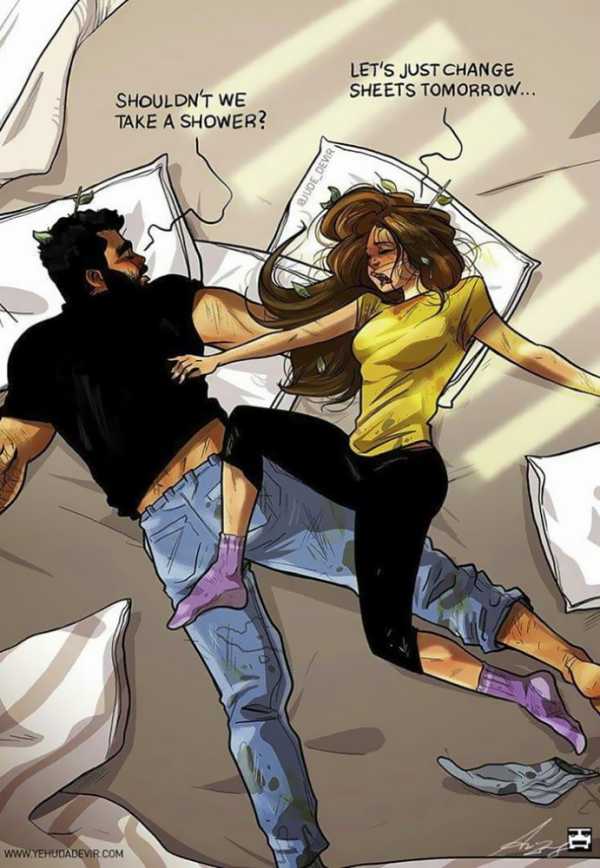 Помните серию иллюстраций об отношениях симпатичной пары из Израиля? Вот продолжение, все рисунки такие же искренние, веселые и совсем без прикрас. Ну просто новый способ показать любовь). Это работа Иегуды Ади Девира – художника, создающего очаровательные комиксы о своих ежедневных домашних приключениях со своей женой Майей.