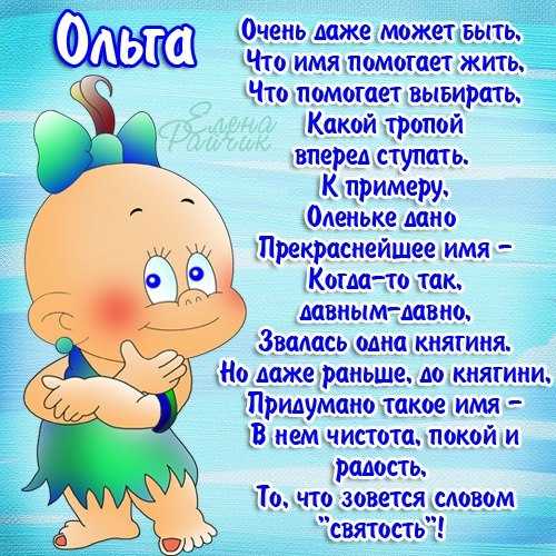 Женщина по имени Ольга является очень трудолюбивой и целеустремленной. Она сделает все, чтобы добиться нужного результата. Но, несмотря на то, что она очень сильная и волевая женщина, ко всему прочему она еще и ранимая. Да-да, ее легко обидеть, но, конечно, вряд ли вам это так просто сойдет с рук. Но в семье она настоящая находка, потому что она отлично готовит, а самое главное – она верна своему мужу. Ольга просто обожает внимание со стороны окружающих, поэтому пойдет на все, чтобы ее заметили. Так что в День рождения своей знакомой или подруги Ольги вы должны будете поздравить ее так, чтобы показать, насколько вы внимательны к ней. Если она получит подарок, который предназначен только ей, то поверьте, что она будет самой счастливой. Но вы можете ограничиться именным поздравлением, которое так же произведет впечатление. Но даже лучше сказать не поздравление, а открытка. Именная поздравительная открытка будет в самый раз.